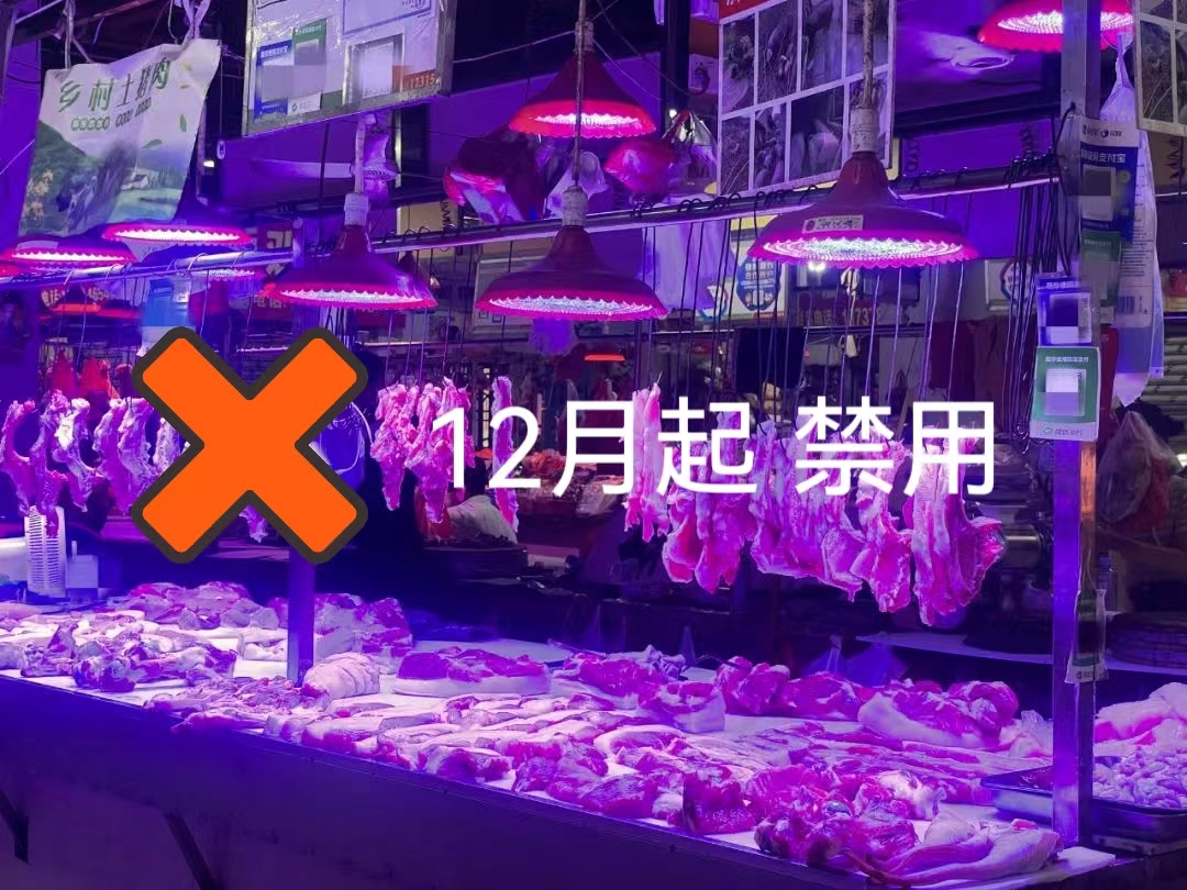 12月1日起,请勿使用“生鲜灯”等对食用农产品的真实色泽等感官性状造成明显改变的照明等设施误导消费者!否则,可能面临警告或罚款5000至30000元不等的处罚。