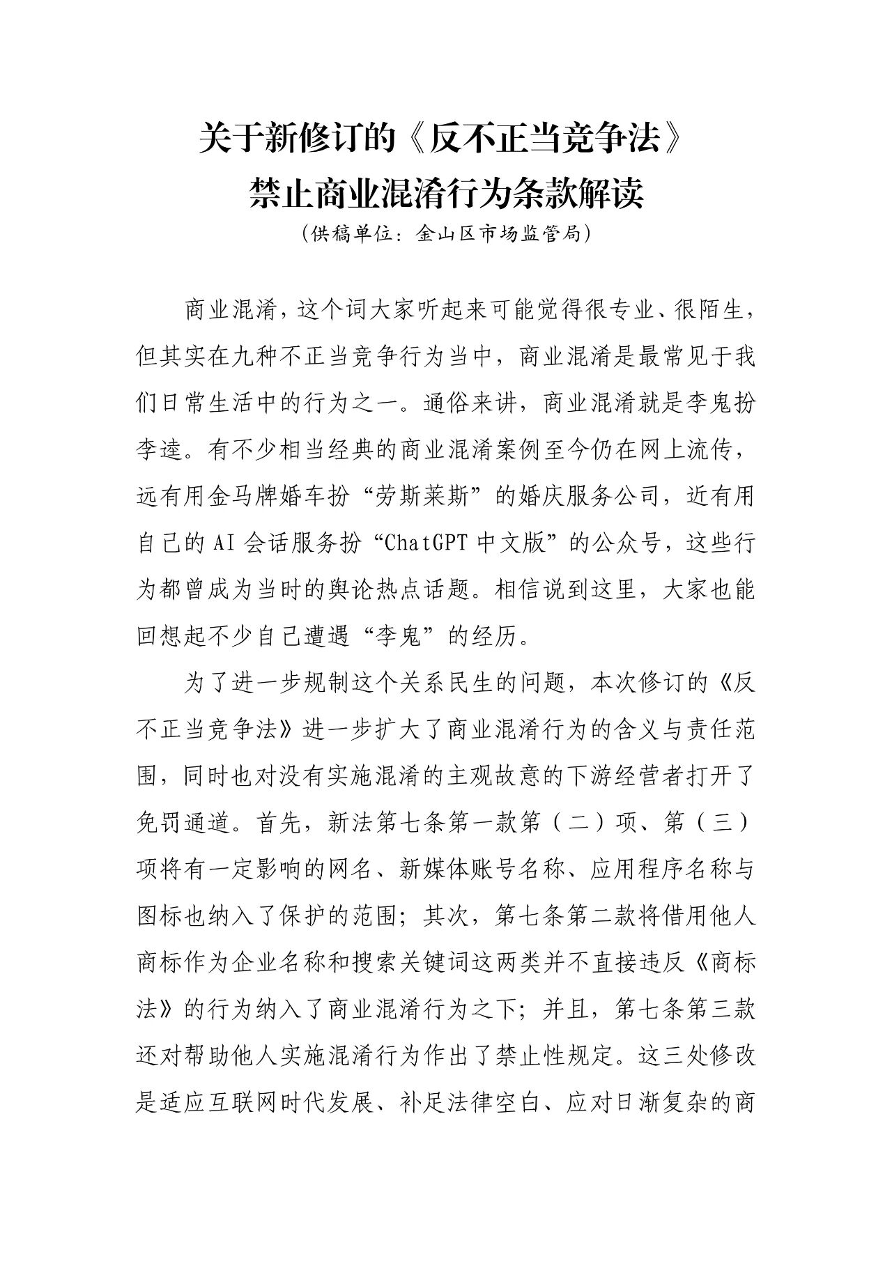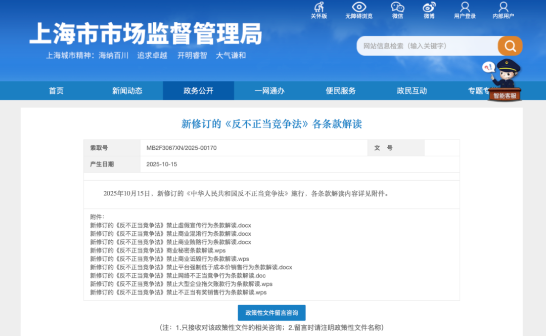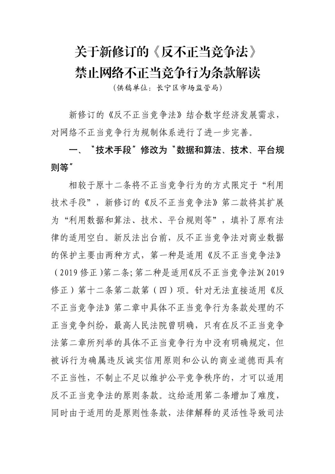 新修订的《反不正当竞争法》已于10月15日起施行。上海市场监管局同日发布了针对9条重点条款的解读,以帮助各类主体更好理解《反不正当竞争法》。