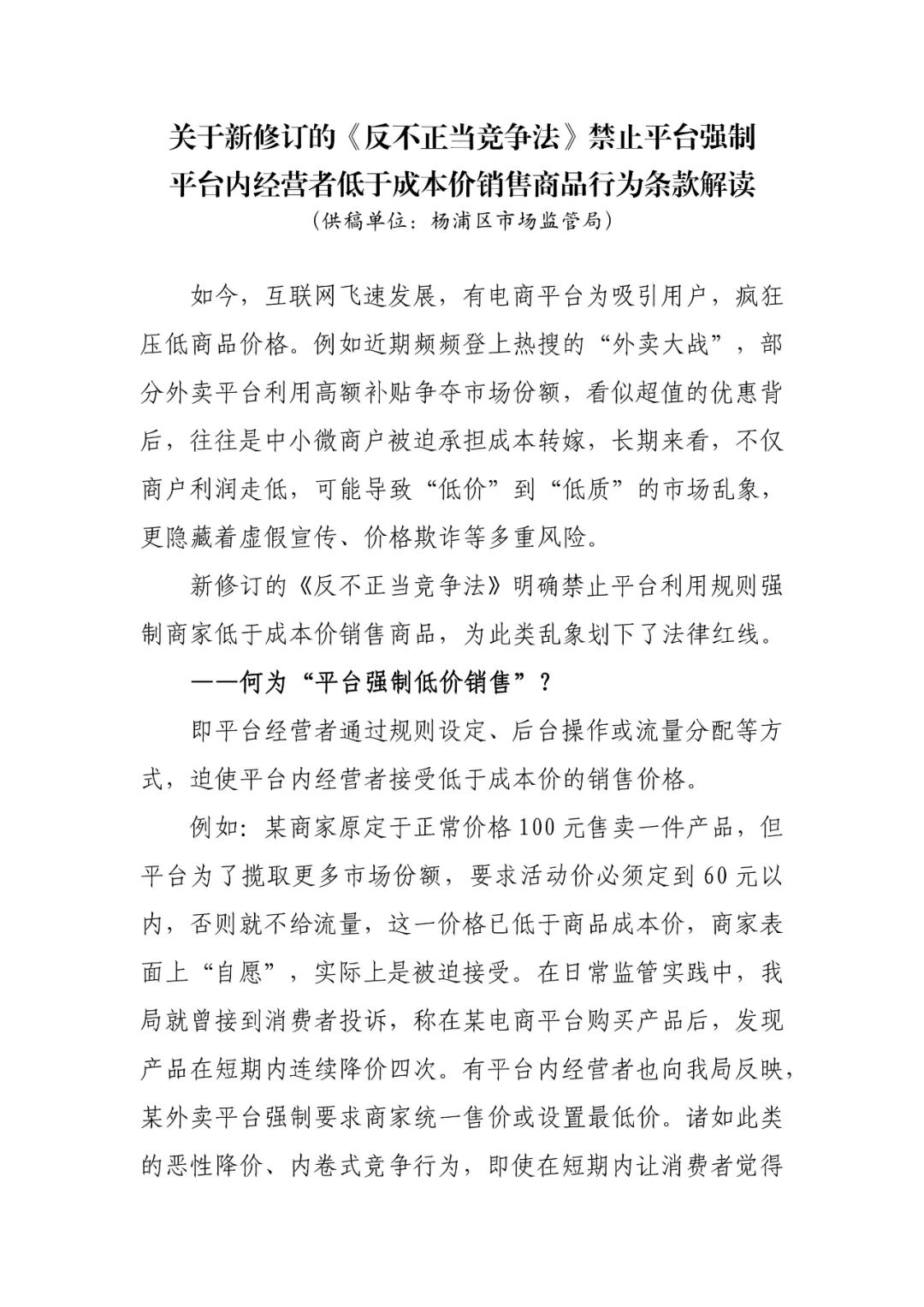 6. 禁止平台强制平台内经营者低于成本价销售商品行为条款解读