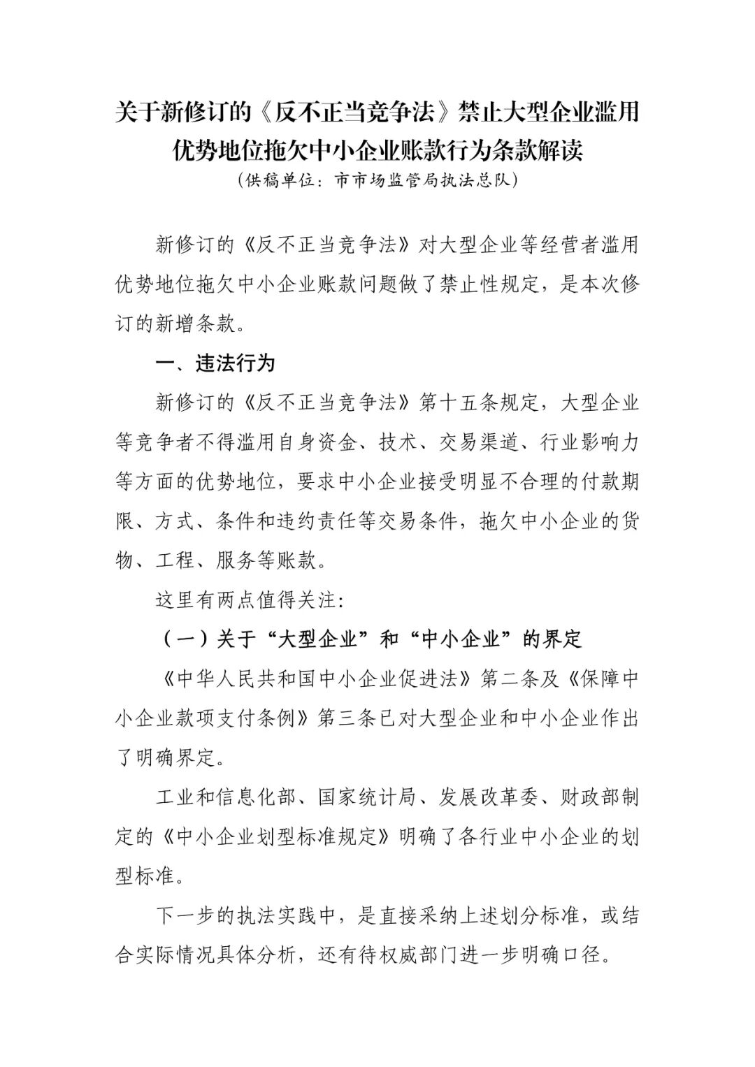 8. 禁止大型企业滥用优势地位拖欠中小企业账款行为条款解读