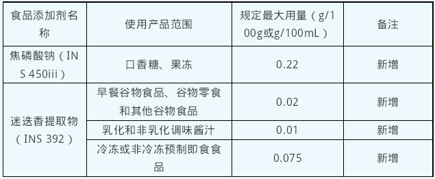2025年11月4日,南方共同市场秘书处发布No22/25号公告,修订食品添加剂使用标准法规。主要内容为新增焦磷酸钠等多种食品添加剂在部分食品中的使用要求,具体如下表所示。该公告将于2026年5月3日生效。