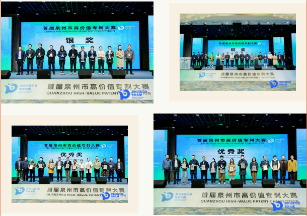 大赛涌现出一批创新质量高、运用效益好、示范效应强的高价值专利项目。在颁奖典礼上,泉州市人民政府蔡天守副市长、泉州市人民政府苏培聪副秘书长、泉州市市场监管局(知识产权局)李德雄局长和泉州市科技局、财政局、工业和信息化局、教育局、市知识产权保护中心等有关单位领导以及参与决赛评审的专家评委分别为金奖、银奖、铜奖及优秀奖颁发奖杯及证书。多家泉州高校、企业代表、知识产权机构齐聚现场,搭建对接桥梁,助力“产、研、学”交流互动。