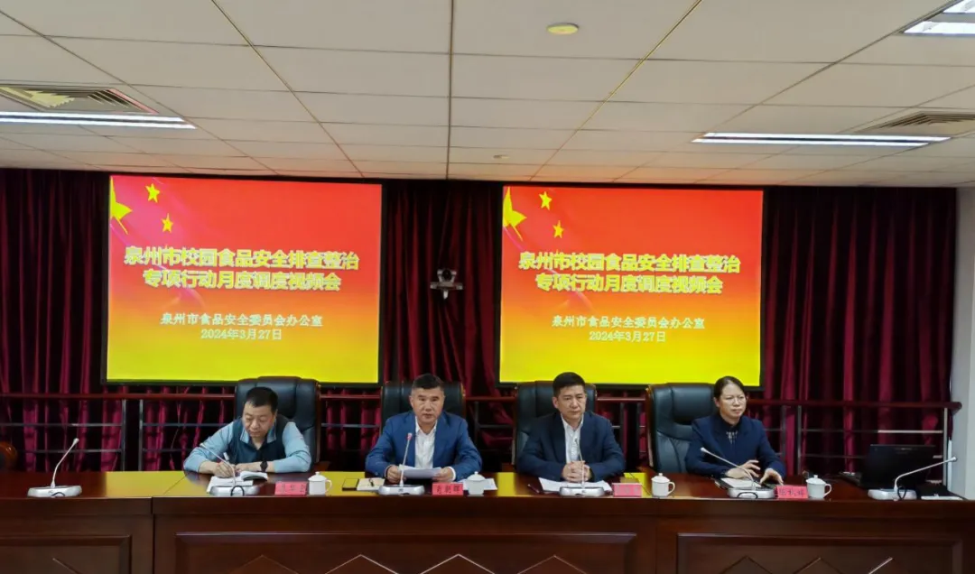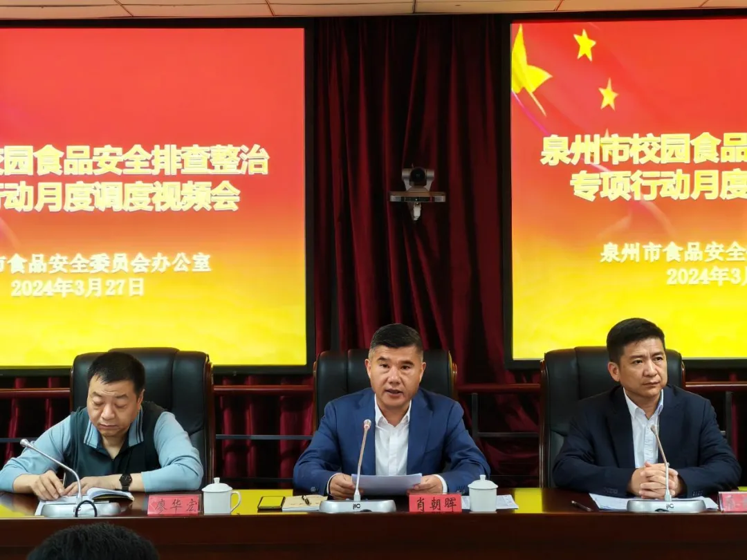 3月27日,泉州市食安办召开全市校园食品安全排查整治专项行动月度调度视频会,泉州市食安办副主任、泉州市市场监管局食品总监肖朝晖、泉州市教育局副局长蔡吉生、泉州市卫健委副主任陈秋婷、泉州市公安局治安支队副支队长廖华宏等领导出席会议。市、县两级分设主会场、分会场,全市共计5000多人次参加会议。