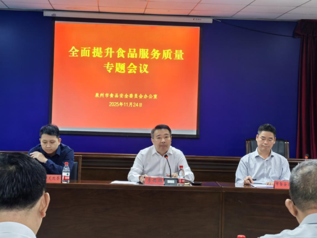 11月24日下午,泉州市食品安全委员会办公室召开全面提升食品服务质量工作专题会议,动员全市各级各相关部门及食品行业协会,以最高标准、最严要求、最实举措,切实守护好“世遗之城 美食之都”这一国际荣誉,市食安办主任李德雄出席会议并作强调讲话。