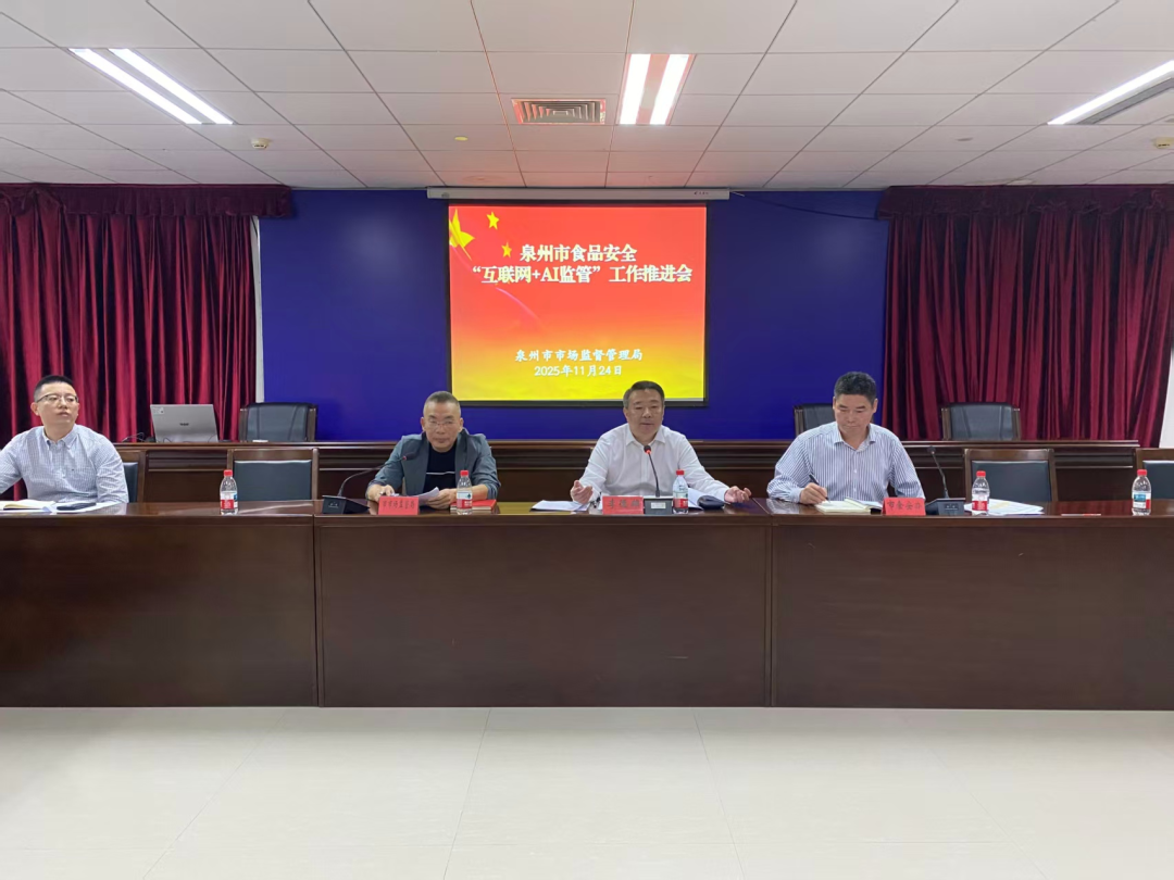 为全面落实省市场监管局食品安全“互联网+AI监管”会议精神,加快构建泉州市“互联网+AI监管”体系,切实提升食品安全智慧监管能力,11月24日,泉州市市场监管局组织召开推进食品安全“互联网+AI监管”工作会议。