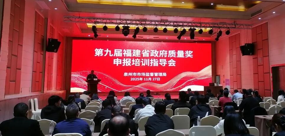 为助力企业精准把握第九届福建省政府质量奖申报政策要求,提升申报质量与核心竞争力,2025 年 11 月 27 日上午,泉州市市场监督管理局精心组织的省政府质量奖申报培训指导会成功举行。各县(市、区)市场监管局负责质量奖申报组织工作的相关人员,以及全市质量奖培育企业、有申报意向企业分管质量高管、质量负责人及申报工作具体负责人共计近 100 人参加培训。