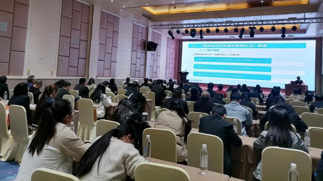 培训严格遵循既定议程有序推进,聚焦 “政策解读 + 实操赋能” 双核心,为参训单位与企业提供精准指导。省市场监管局质量发展处领导围绕第九届福建省政府质量奖核心政策进行深度解读;省政府质量奖评审专家以“实操赋能”为核心,系统讲解自评报告编写、评审应答思路及证实性材料准备规范,内容兼具理论性与实践性。