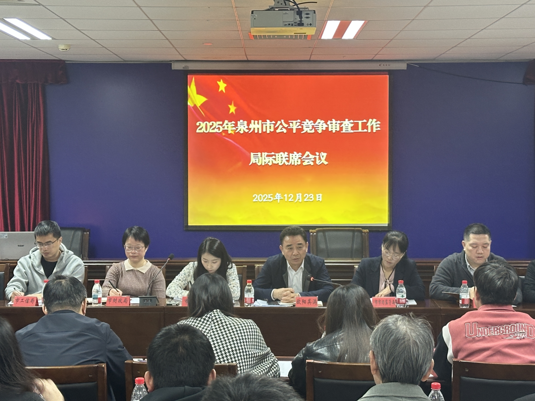 为深入贯彻落实《公平竞争审查条例》,进一步推进我市公平竞争审查工作,12月23日,泉州市召开2025年公平竞争审查工作局际联席会议,市市场监管局党组成员、副局长、市公审办主任欧阳其满出席会议。