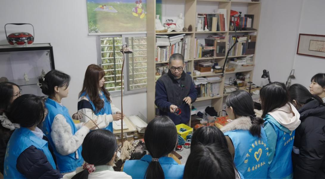 在鲤城区,队员们与南音省级传承人庄丽芬展开对话。庄丽芬老师分享了从零基础入门到深耕南音传承的历程,以及南音传承中心在抢救濒危曲目、创新传播方式上的努力。交流中,她提到原创作品《文姬归汉》被外地乐团未经授权使用的案例,双方就非遗领域在原创内容保护与维权机制建设上面临的挑战与应对措施进行深入交流。