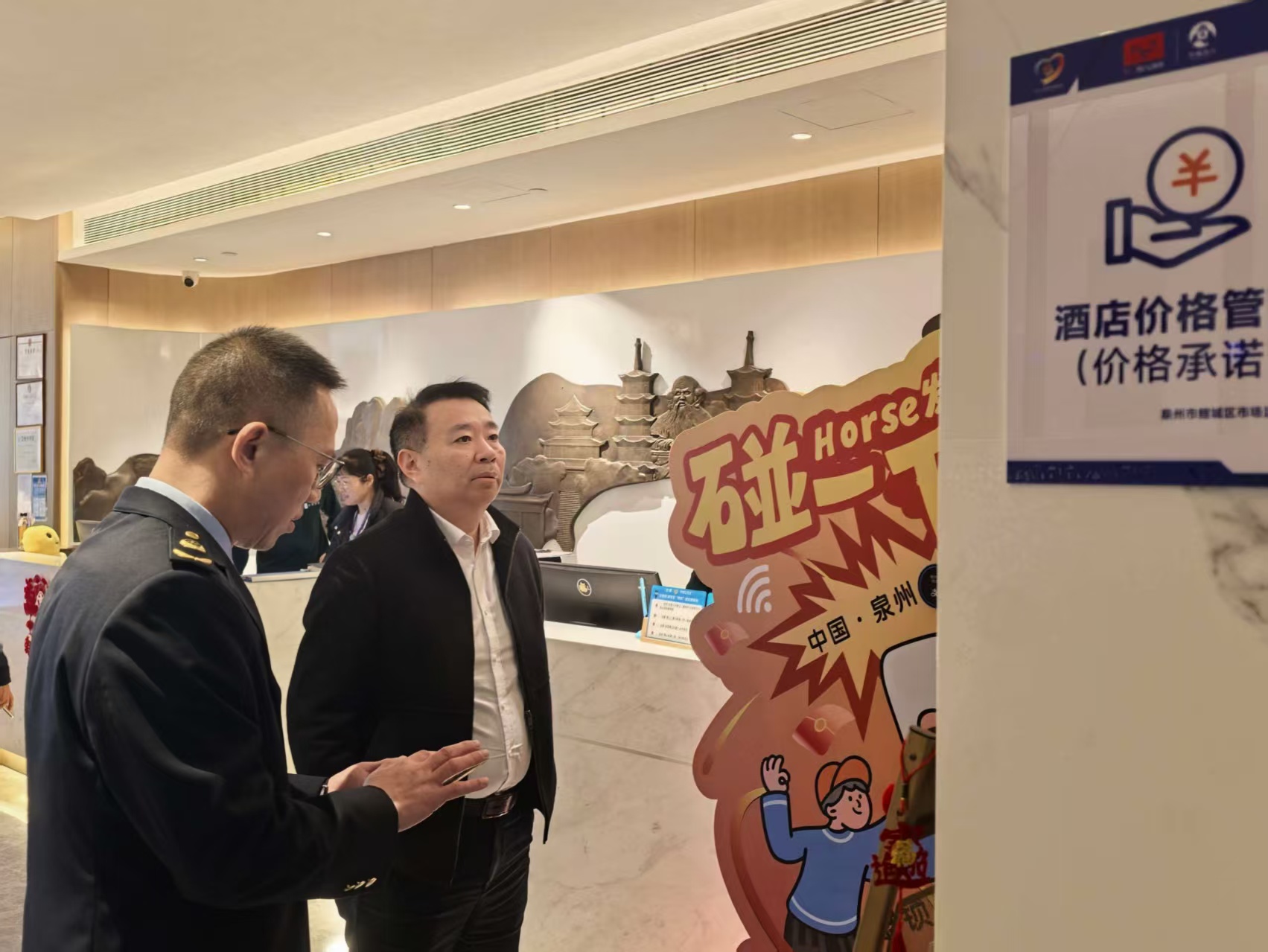 新春临近,年味渐浓。为切实保障春节元宵期间文旅市场秩序平稳、消费环境安全,确保市民和游客度过一个安心、舒心、放心的佳节,近日,泉州市文旅经济发展总指挥部市场规范组组长、市市场监管局局长李德雄带队,深入中心城区重点区域和场所,开展文旅市场秩序与安全生产检查督导。检查组聚焦酒店民宿、餐饮食品、商贸零售三大关键领域,紧扣价格行为、食品安全、产品质量、服务规范及消费者权益保护等重点环节,全面排查隐患、督促整改提升,筑牢市场稳定和安全防线。