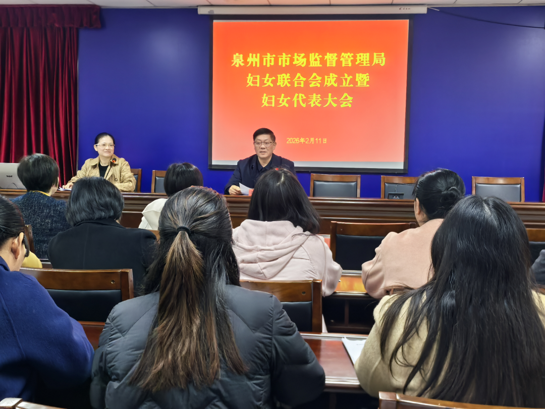 为深入贯彻落实妇联组织建设要求,切实维护女职工合法权益,激发巾帼建功新动能,2月11日,泉州市市场监督管理局妇女联合会成立暨妇女代表大会顺利召开。 预备会议上,与会代表审议并通过了大会主要议程及第一届执行委员会委员候选人名单,为正式会议奠定了坚实基础。