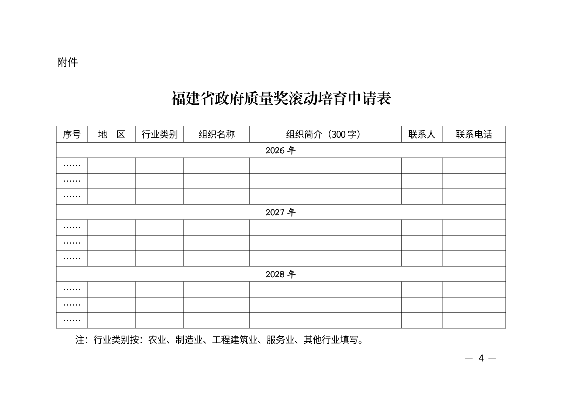附件:福建省政府质量奖滚动培育申请表