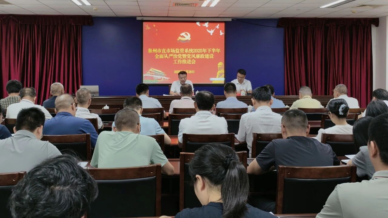 为进一步落实全面从严治党主体责任,持续巩固拓展深入贯彻中央八项规定精神学习教育成果,2025年9月28日上午,泉州市直市场监管系统召开2025年下半年全面从严治党暨党风廉政建设工作推进会,泉州市市场监管局党组书记、局长李德雄,驻局纪检监察组组长、局党组成员庄争出席会议并讲话。